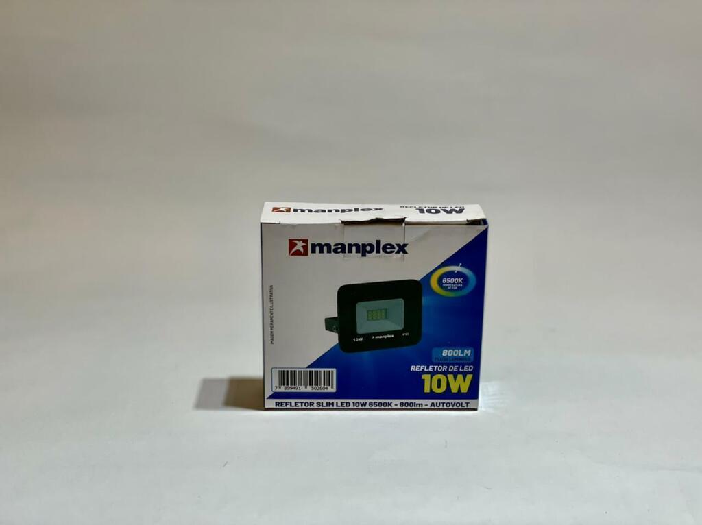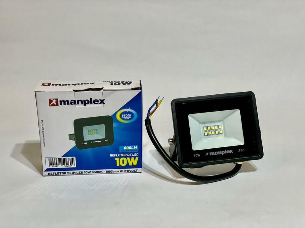 O Refletor da marca Manplex é feito de alumínio na cor preta e possui LED Integrado na cor branca. O produto possui IP65 que é indicado para resistir à chuva e jatos de água.