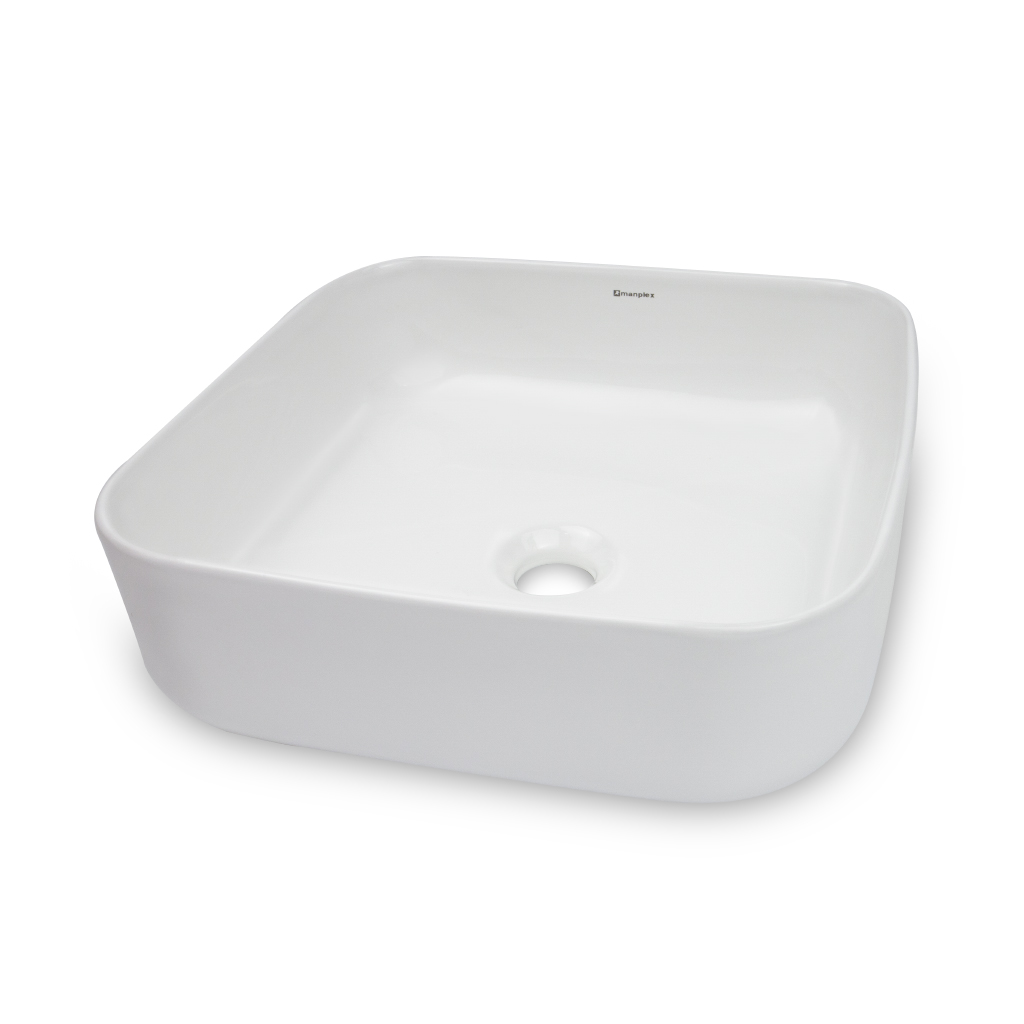 A peça, produzida pela marca Manplex, possui forma quadrada e pintura esmaltada na cor branco brilhante.