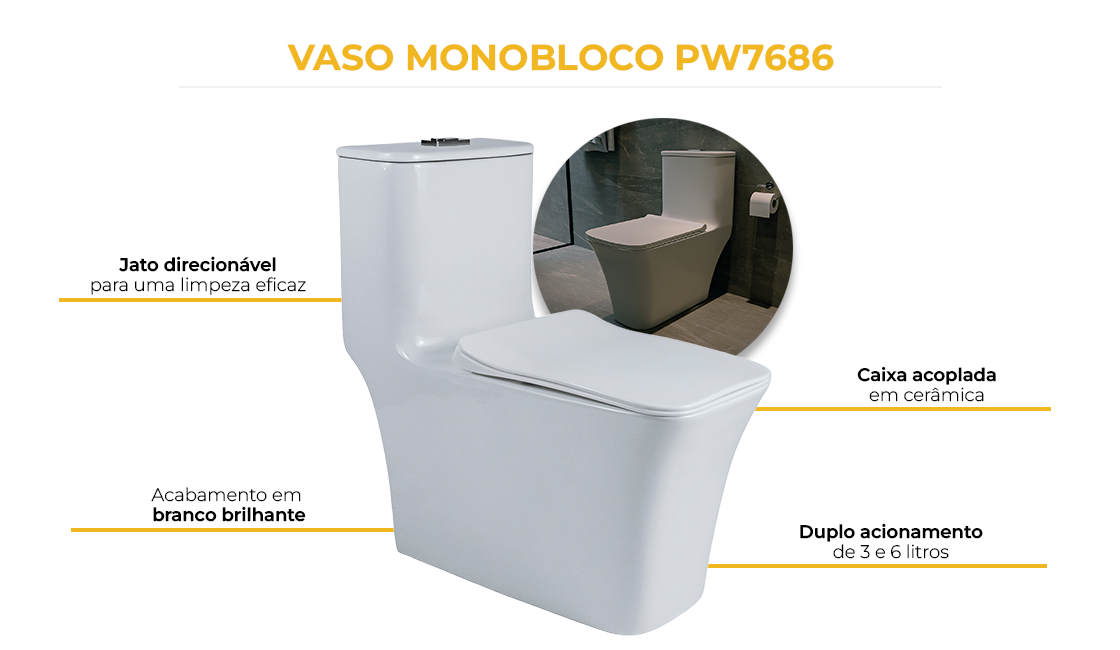 Confira abaixo mais detalhes do Vaso Sanitário Monobloco PW7686: